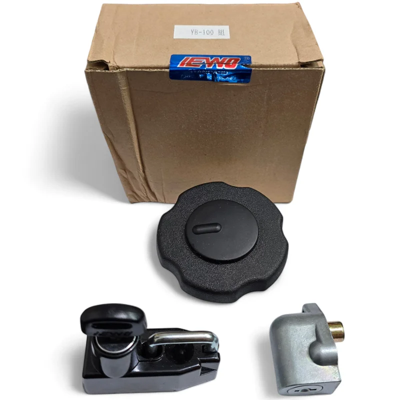 ست سوئیچ موتورسیکلت یاماها ۱۰۰ جدید برند ایوو ساخت کشور تایوان شامل درب باک، قفل فرمان و قفل کلاه و دو عدد کلید (سوئیچ خاموش روشن موتور در این ست موجود نمی باشد)